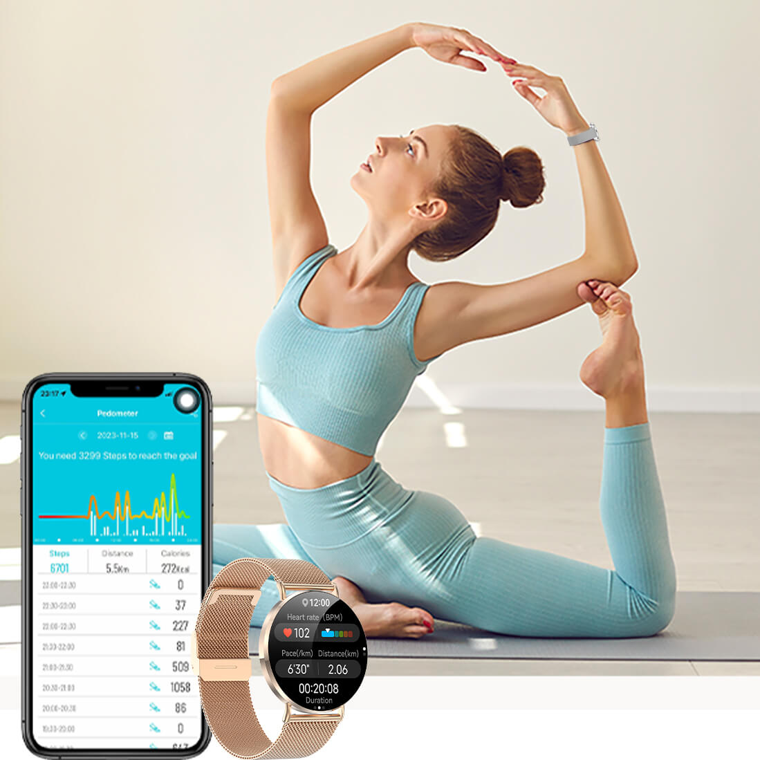 In addition to the traditional functions of heart rate and blood oxygen detection, we have added mood and stress detection for women, as well as breathing training functions. A more relaxed mood contributes to a better and healthier life.